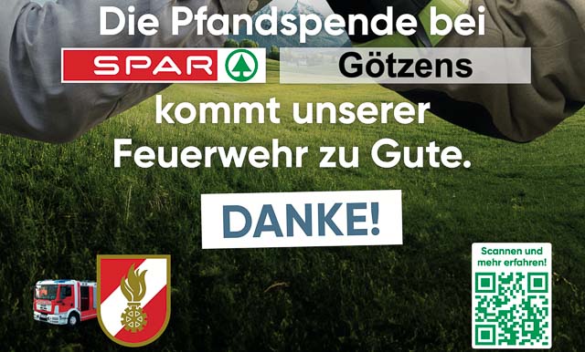 Alle Pfandbonspenden 2026 bei SPAR Götzens kommen der Feuerwehr Götzens zugute!