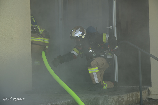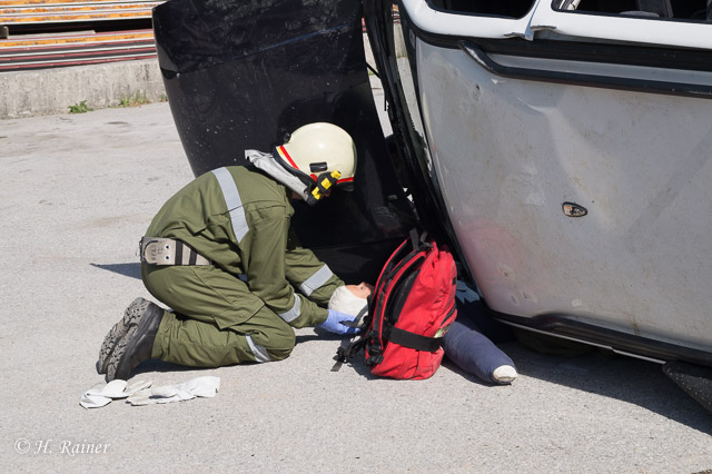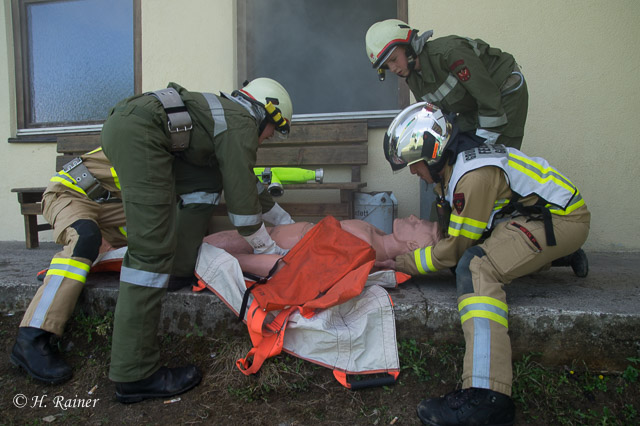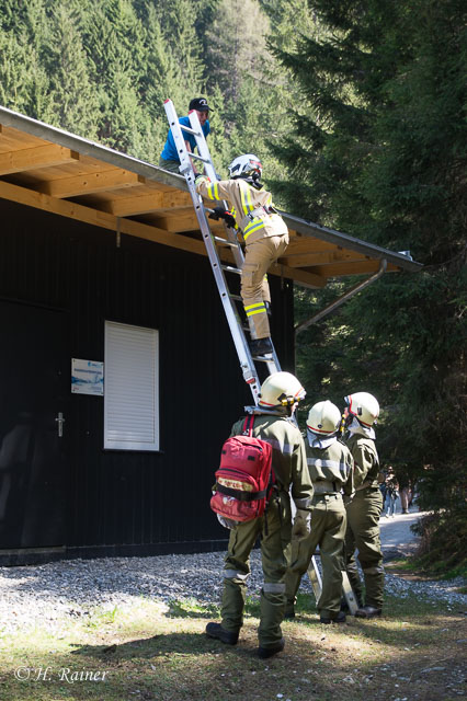 Station 1, Waldbrand mit verletzter bzw. am Dach festsitzender Person: