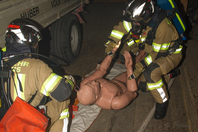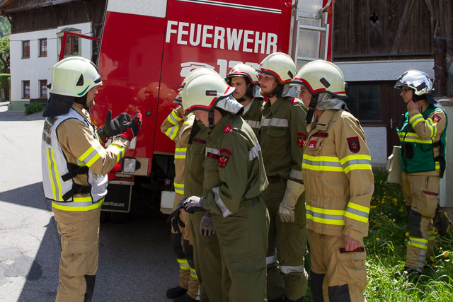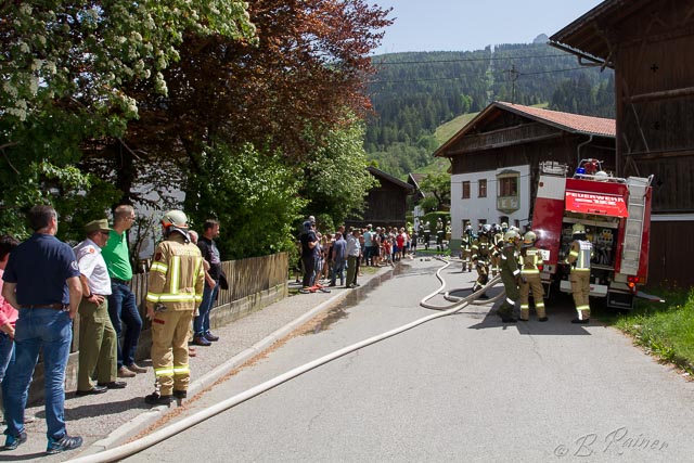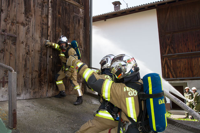 Um 13:30 Uhr wurde mit Sirenen- und Pageralarm zum Übungsobjekt in den dicht verbauten Ortsteil Gries gerufen. Übungsannahme war ein Brand im Stall eines Bauernhauses mit angenommener Brandausbreitung in den Tennen und zwei vermissten Personen.