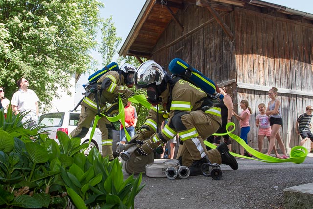 Die Besatzung des KLF baute vom Löschwasserbehälter im Gries eine Löschleitung zum Übungsobjekt auf und unterstützte bei den Löscharbeiten auf der Westseite.