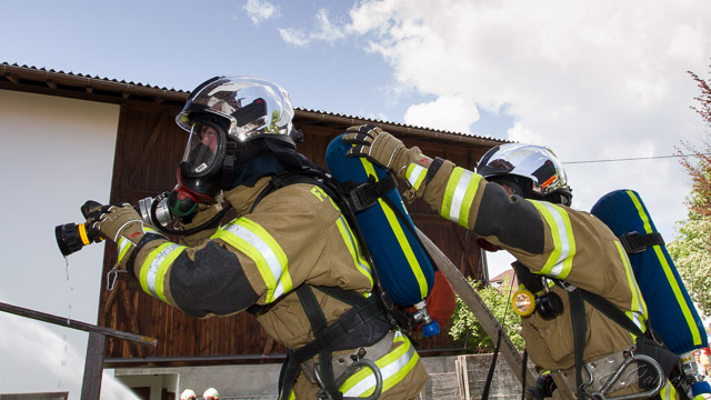 Die Gruppe LFB stellte den ATS-Reservetrupp und hatte die Aufgabe, einen Löschangriff von einem Hydranten auf der Ostseite vorzutragen und die an der Südseite angebaute Häuserzeile zu schützen.