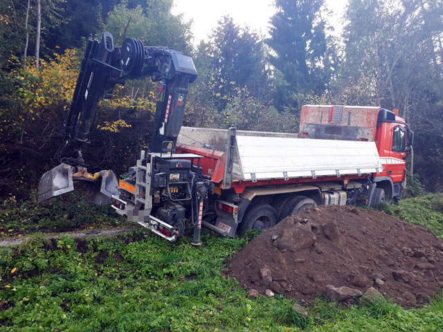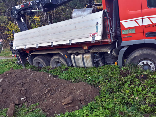 Ein LKW, der den Panoramaweg entlang fuhr, war aus unbekannter Ursache über den Fahrbahnrand hinaus geraten und drohte ab- bzw. umzustürzen. Die alarmierten Einsatzkräfte konnten den LKW mit Hilfe von zwei Traktoren mit deren Seilwinden wieder auf den Weg ziehen und so größeren Schaden verhindern.