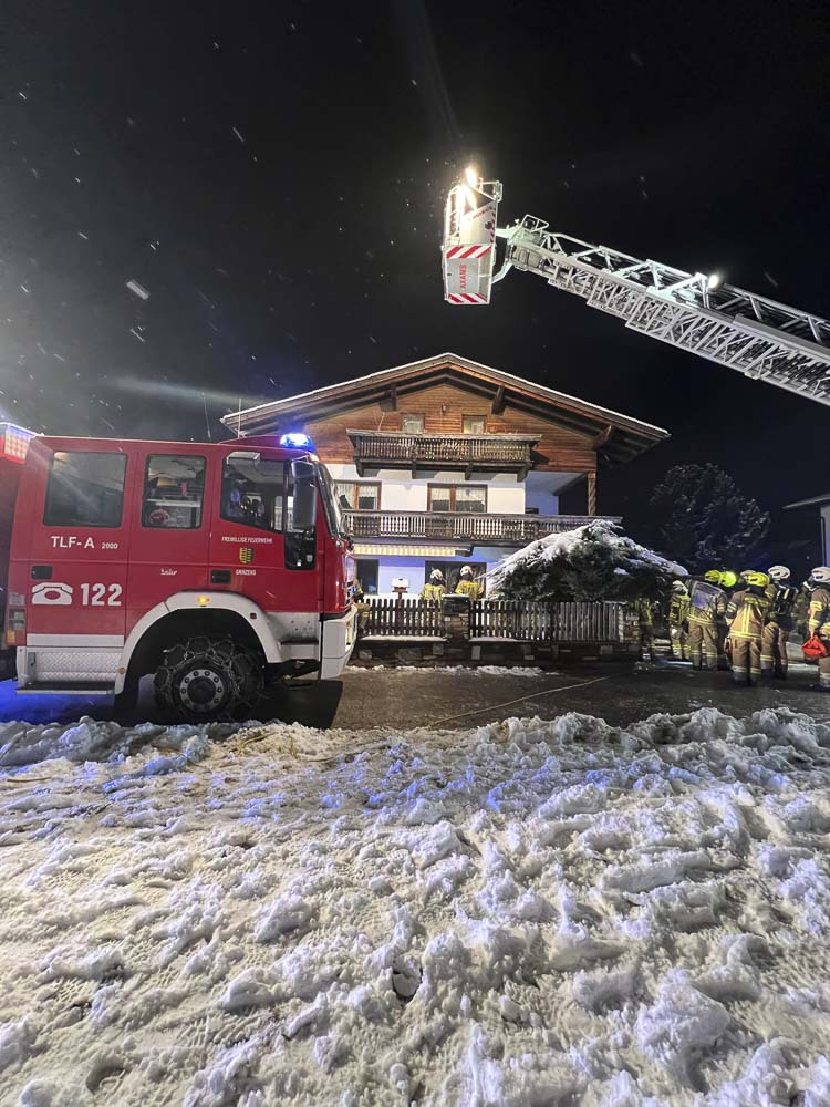 Nicht benötigte Kräfte (TLFA Birgitz, TLFA 1 Axams, LFB Götzens, KDOA Götzens, sowie der Einsatzleiter Rettungsdienst) rückten sofort nach Birgitz zum Brandeinsatz ab. Da die Anfahrt von der Axamer Lizum über die verschneite Straße einige Zeit in Anspruch nimmt, wurde sofort die Feuerwehr Grinzens zum Gebäudebrand alarmiert.