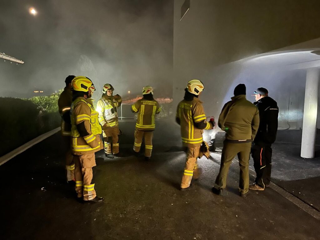 Übungsannahme war der Brand einer Tiefgarage mit vermisster Person. Zudem war die Bergung weiterer Personen mittels Leiter aus den Obergeschossen notwendig.