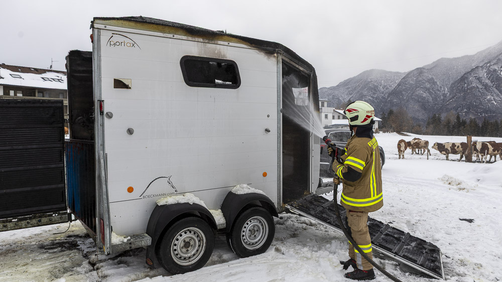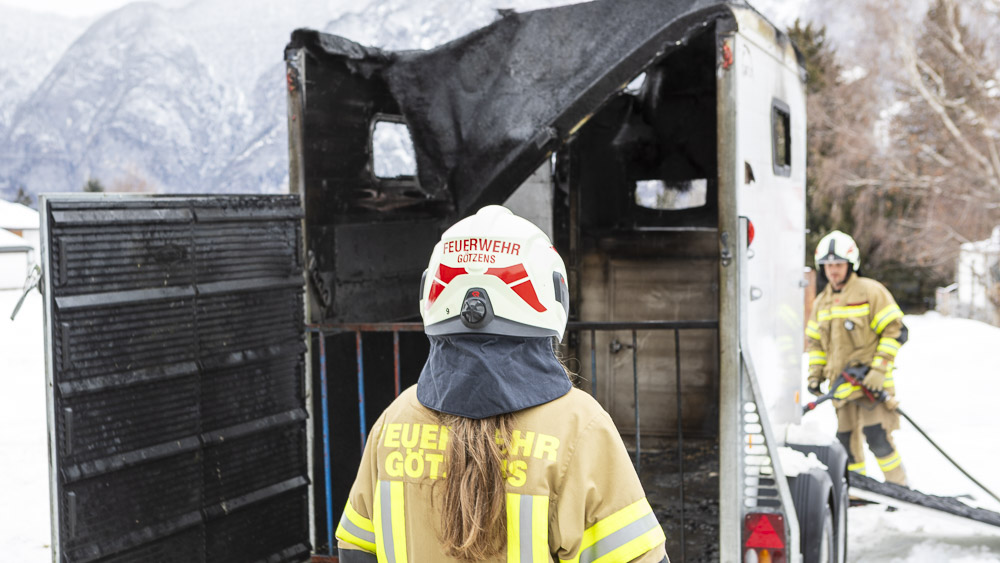 Ein Viehanhänger hatte im Nahbereich eines landwirtschaftlichen Gebäudes Feuer gefangen. Bei Eintreffen der Einsatzmannschaft zeigten erste Löschversuche des Besitzers mit einem Gartenschlauch bereits Wirkung und von der Feuerwehr mussten nur noch Nachlöscharbeiten durchgeführt werden. Die Fassade des Stallgebäudes wurde mit der Wärmebildkamera kontrolliert und die Feuerwehr konnte um 15:40 Uhr wieder ins Gerätehaus einrücken.