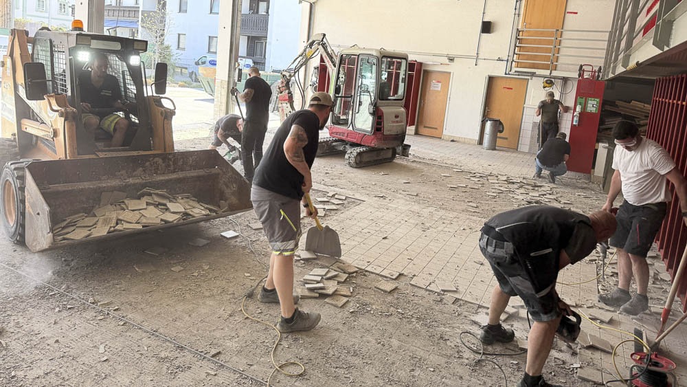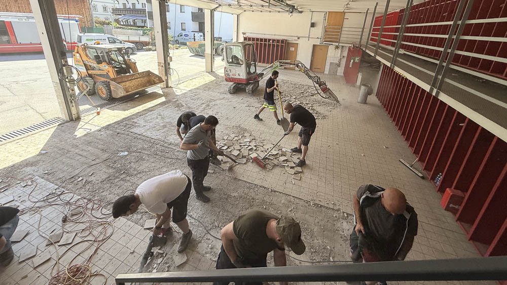 Als erster Schritt wurde am Freitag, den 17.04.2026 in Eigenregie der alte Bodenbelag entfernt. Wir bedanken uns bei der Firma GRUBER Transport & Erdbau, die uns für diese Arbeiten zwei kleine Bagger zur Verfügung gestellt hat.